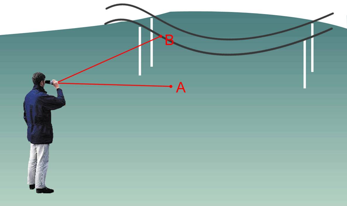 相位式激光测距仪是用无线电波段的频率,对激光束进行幅度调制并测定调制光往返测线一次所产生的相位延迟,再根据调制光的波长,换算此相位延迟所代表的距离。即用间接方法测定出光经往返测线所需的时间,如图所示。