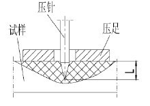 与试样表面完全贴合时,压针尖端面相对压足平面有一定的伸出长度L(见图1)